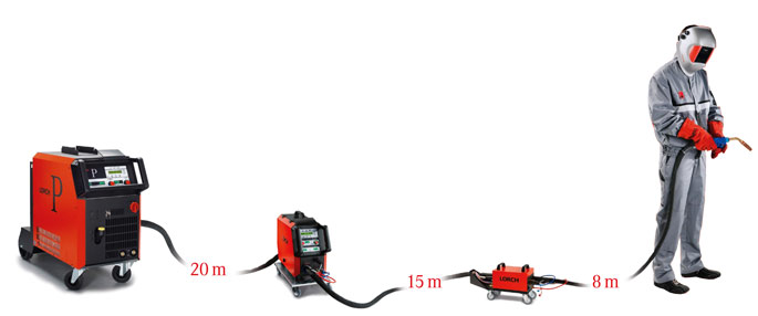 Előtoló a gépben és külső egységben egyaránt. Ideális, ha kétféle hegesztőanyaggal felváltva hegesztenek. |